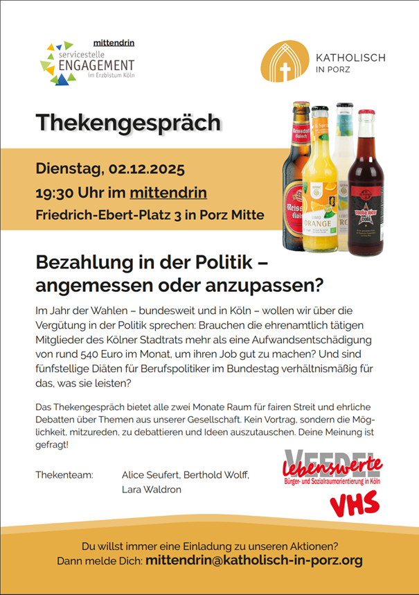 Im Jahr der Wahlen – bundesweit und in Köln – wollen wir über die Vergütung in der Politik sprechen: Brauchen die ehrenamtlich tätigen Mitglieder des Kölner Stadtrats mehr als eine Aufwandsentschädigung von rund 540 Euro im Monat, um ihren Job gut zu machen? Und sind fünfstellige Diäten für Berufspolitiker im Bundestag verhältnismäßig für das, was sie leisten?